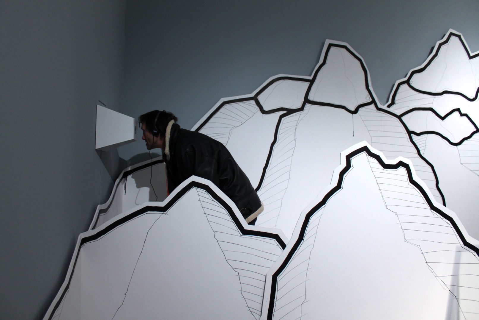 The visitor is guided through the exhibition by an imaginary omniscient protagonist. The guest is invited to enter an oversized version of the protagonist‘s journal, which visually documents his trip amongst the Nomads in the Caucasus. The audience experiences the world of the Nomads and the site of the archaeological finds from a first-hand perspective.