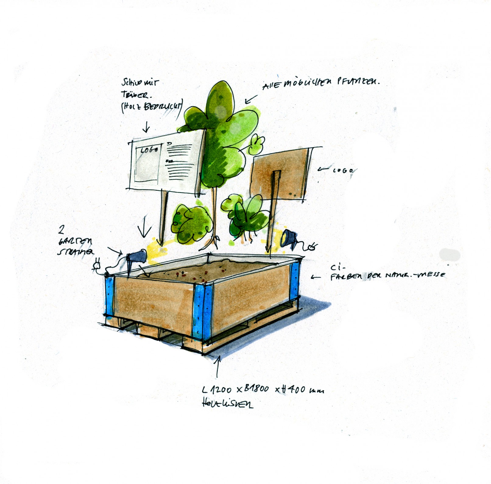 As the „Natur“ is a fair about sustainability we asked urban gardening entrepreneur Klaus Bernhard to plant six transportation boxes he likes to use as planters with perennial flowers. After the fair the boxes were used during the whole years on outdoor spaces throughout Basel until the next Natur fair would start.