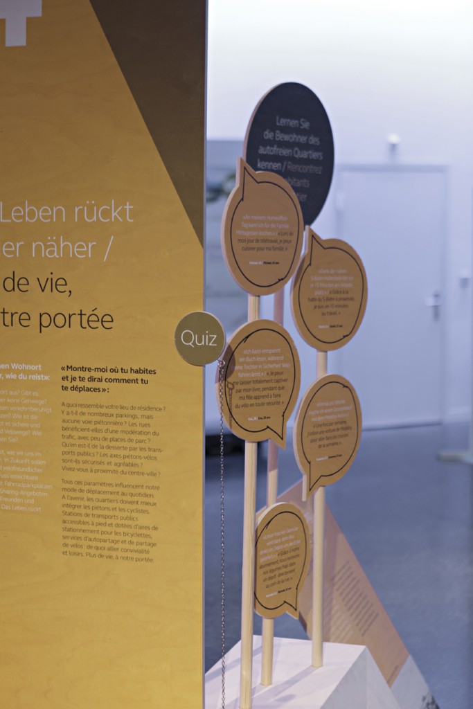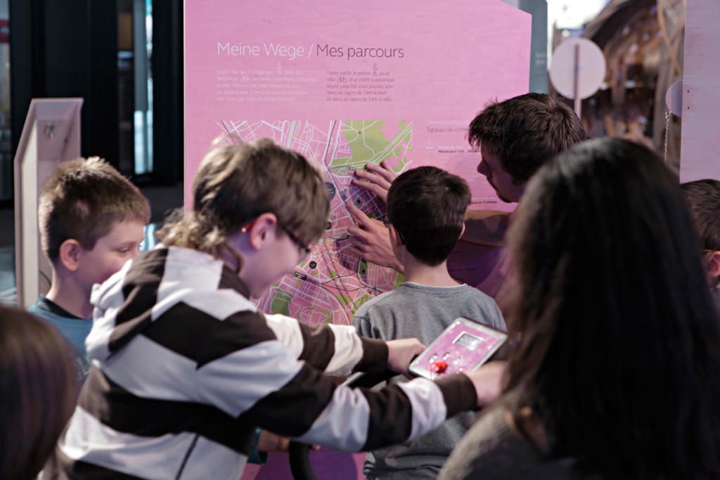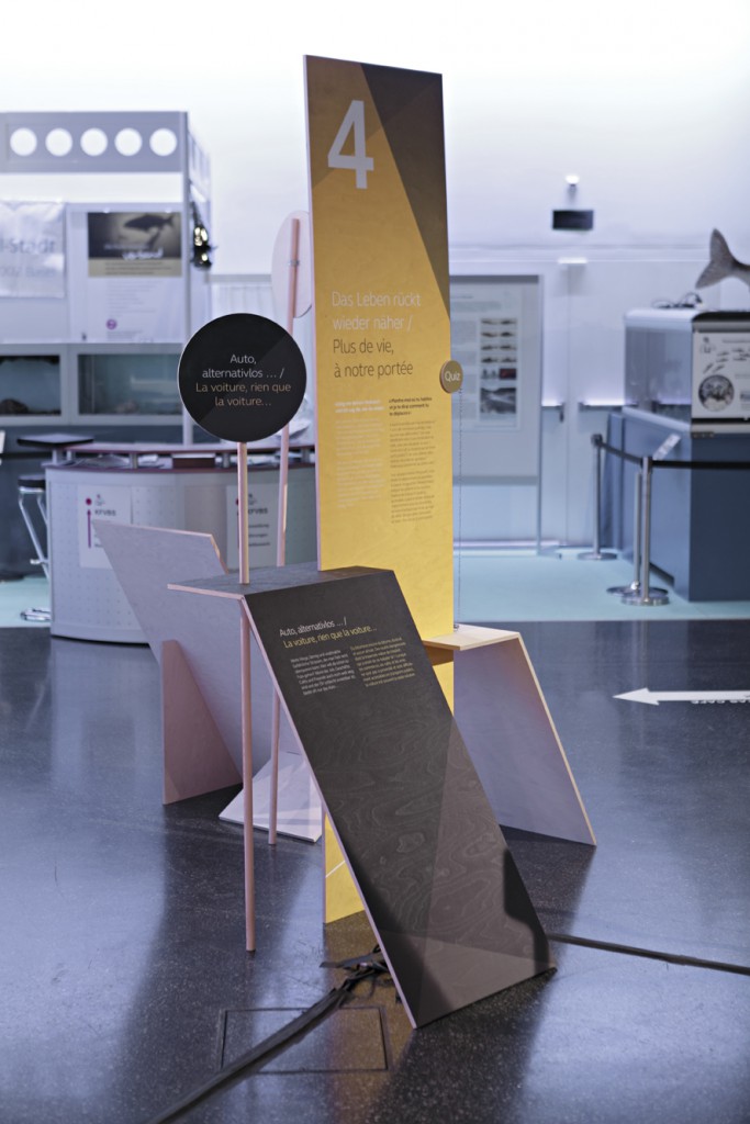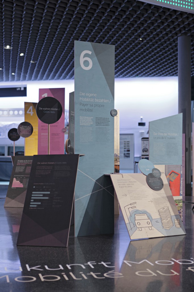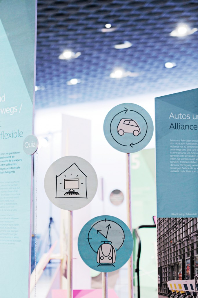 Interactive exhibition stand at the Eco fair in Basel. Visitors could experience and scrutinize their own behavioral patterns on mobility – and at the same time, learn about related topics such as current traffic problems, future transportation and residential concepts in Switzerland.