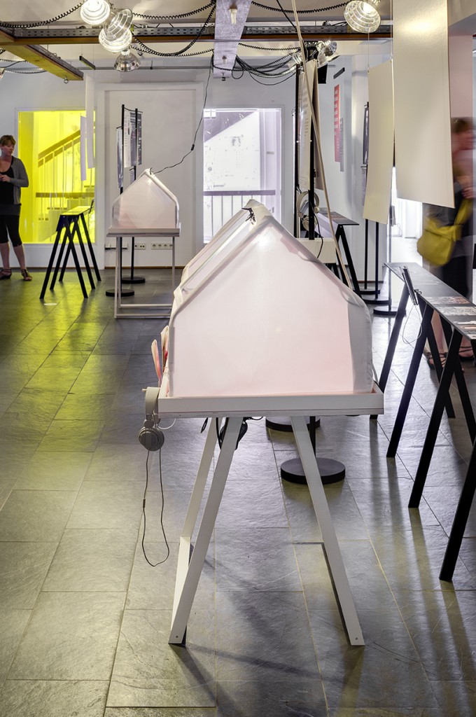 Traumland und Zuflucht was a traveling exhibition which was touring through Germany and France. The set and all furniture can be assembled quickly, is easy to store and relocate.